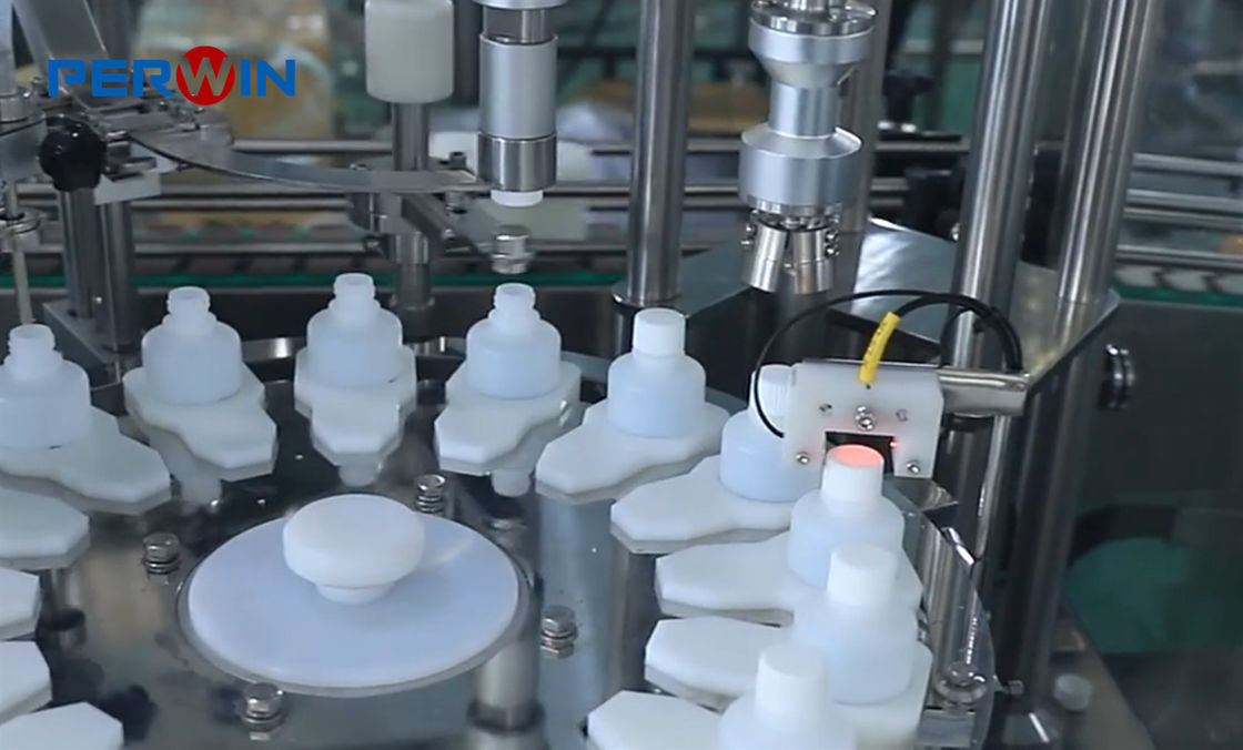 Двухпозиционный розлив с отслеживанием. Автоматическое снятие крышек манипулятором, технология предварительной укупорки и укупорки, приводимая в действие прецизионным кулачковым механизмом. Сервотехнология управляет крутящим моментом укупорки. Устройство автоматической сортировки крышек и звукоизоляционный кожух. Розлив с подъемом для предотвращения разбрызгивания.